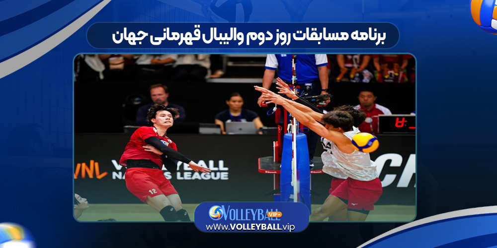روز دوم مسابقات والیبال قهرمانی جهان شنبه ۲۲ شهریور با دیدارهای آمریکا – کلمبیا، کانادا – لیبی، کوبا – پرتغال، ژاپن – ترکیه، آلمان –